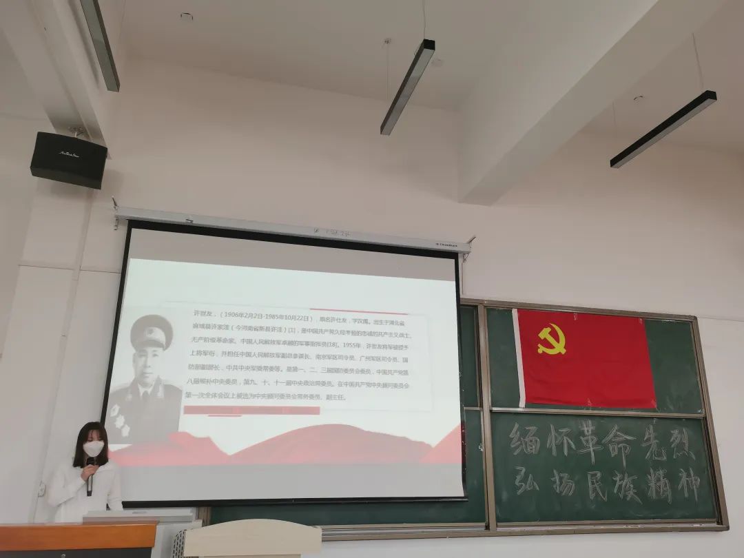 活动伊始,6名成员代表分别以PPT的形式展示了详实的史料照片和英雄遗物照片,并为大家讲述了革命时期自己家乡那些鲜为人知的英雄先烈们艰苦卓绝的战斗经历。一副副泛黄的老照片,一件件承载了历史记忆的老物件,重现了当年老一辈革命家自力更生、艰苦奋斗的历史场景,并向每一位同学诉说着当年的峥嵘岁月,时刻提醒着大家要铭记历史,牢记今天的幸福生活来之不易。大家听完以上同学的分享后纷纷表示,传承红色基因,弘扬英烈精神,接续奋斗、勇往直前,这是对革命先辈最好的告慰,也是我们必须肩负的责任。