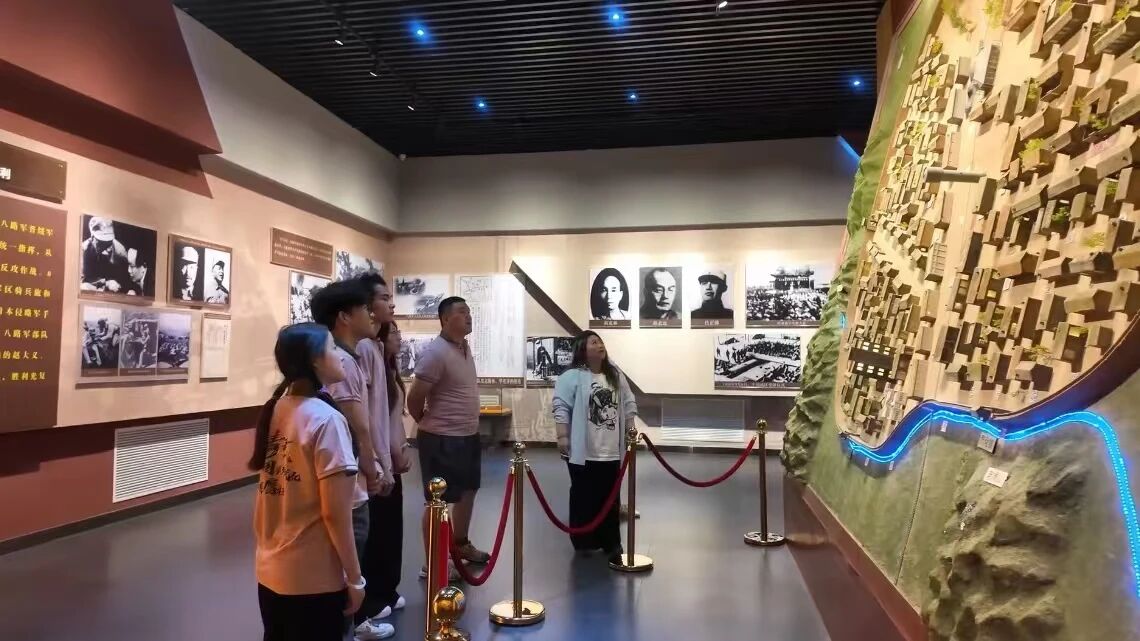 参观集宁战役纪念馆,聆听革命历史。创新开展“双语红色课堂”:播音学子(吉雪岩、吕桃颖)普通话诵读命令,王玥博用蒙汉双语讲述革命事迹(如“独臂团长”故事);张守宝结合实物讲解,王立松双语补充。在纪念碑前庄严宣誓(领诵:王玥博):“继承先烈志,筑牢共同体;青春献北疆,推普助振兴!”